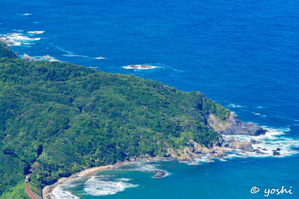 道の駅から約20~30分ほどの距離にある大麻山から、ちょうど道の駅の前の線路のあたりを俯瞰します。かなりの距離なのでかすみの少ない季節が良さそうです。今回は9月の撮影でしたが、春頃が良いのではと思っています。300mm以上の望遠レンズがないと結構厳しいです。アクセス自体は簡単で、少し山道を登る程度で難なくたどり着けます。