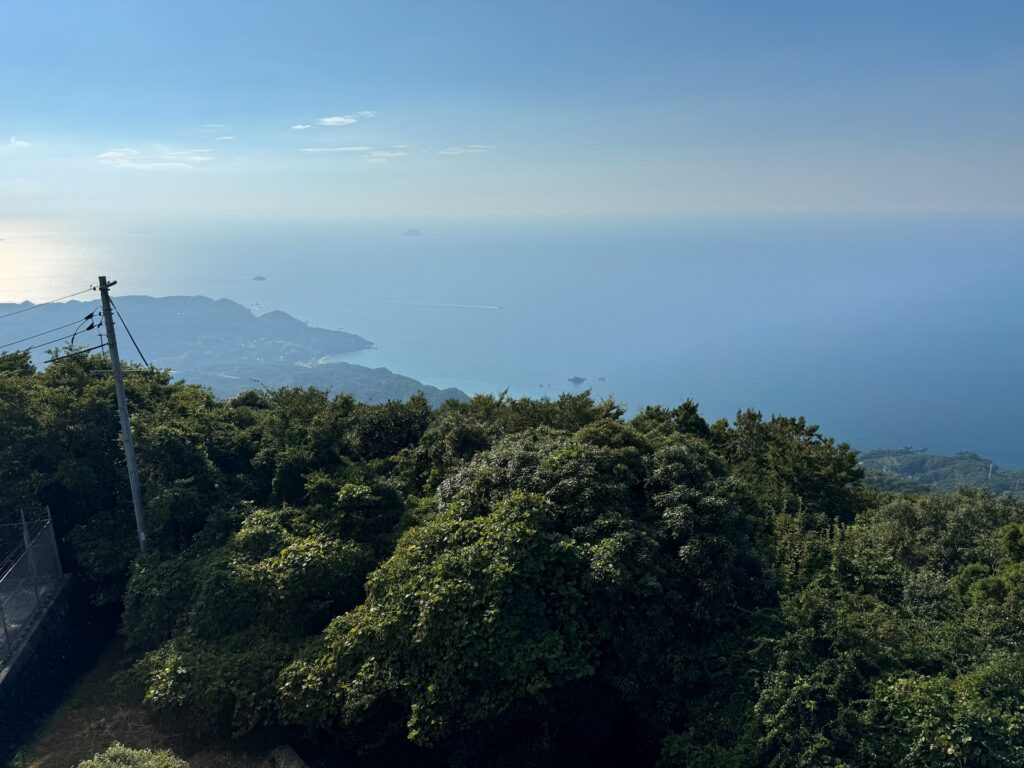 山頂からの眺め。湾のような形になっているあたりが道の駅で、あのあたりを狙います。